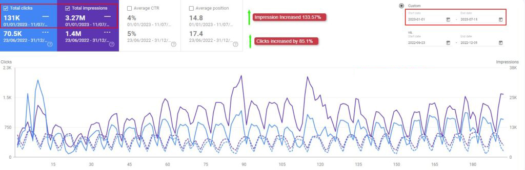 - Clicks: Increased by 85.1%, demonstrating heightened user engagement.
