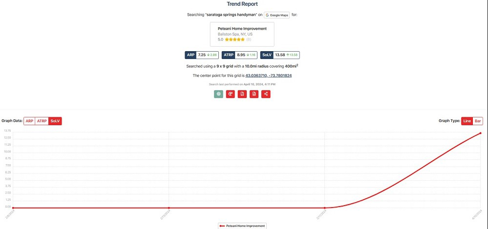 - Continuous Monitoring:Â Utilized Local Falcon to monitor the clientâs local SEO performance, focusing on improving their Share of Local Voice (SoLV).